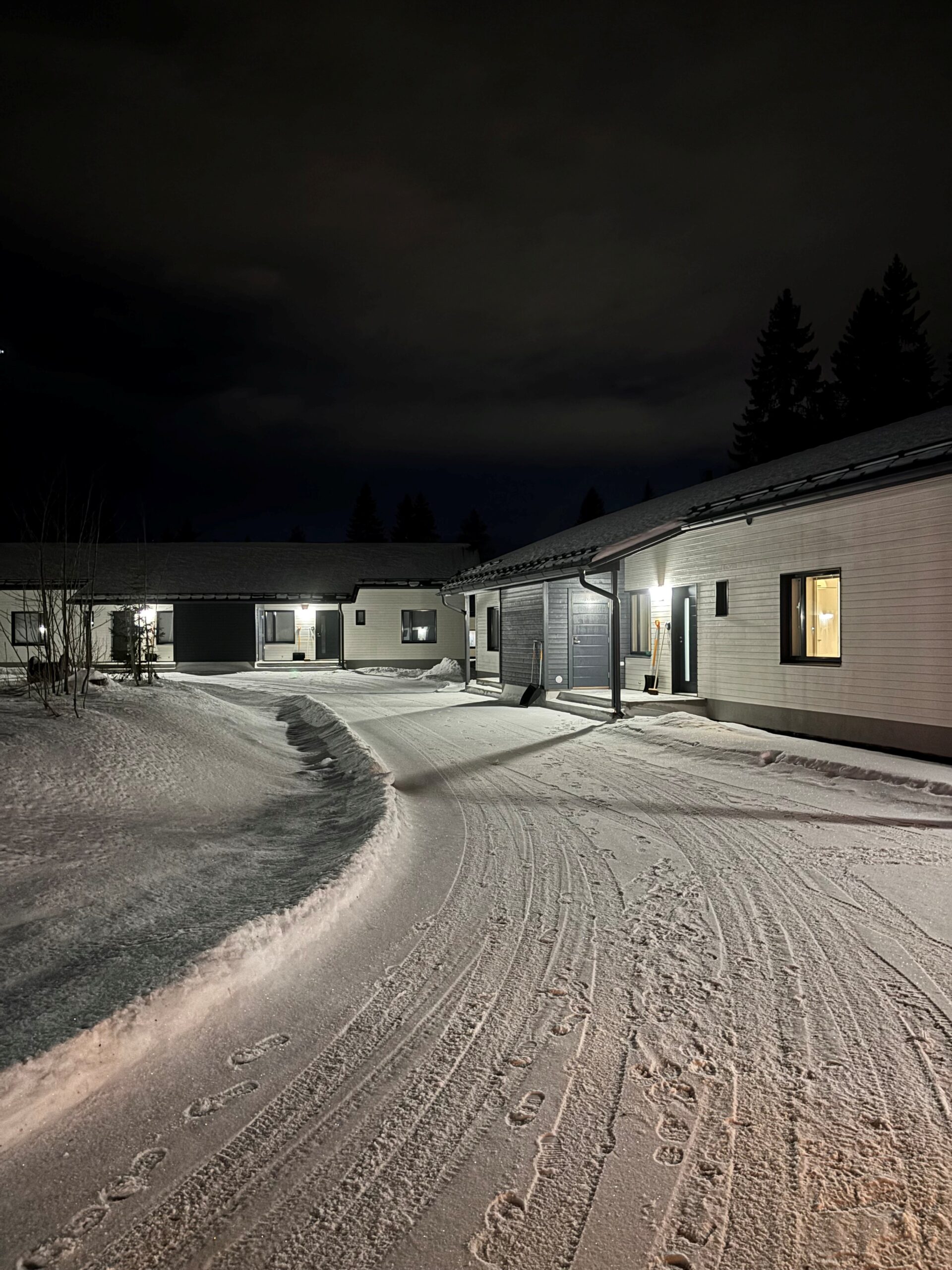 The Matinpolku row house complex consists of 11 apartments and a carport. Construction was completed in December 2024. The first five apartments were ready to move into before Christmas, and the remaining six were finished in January.